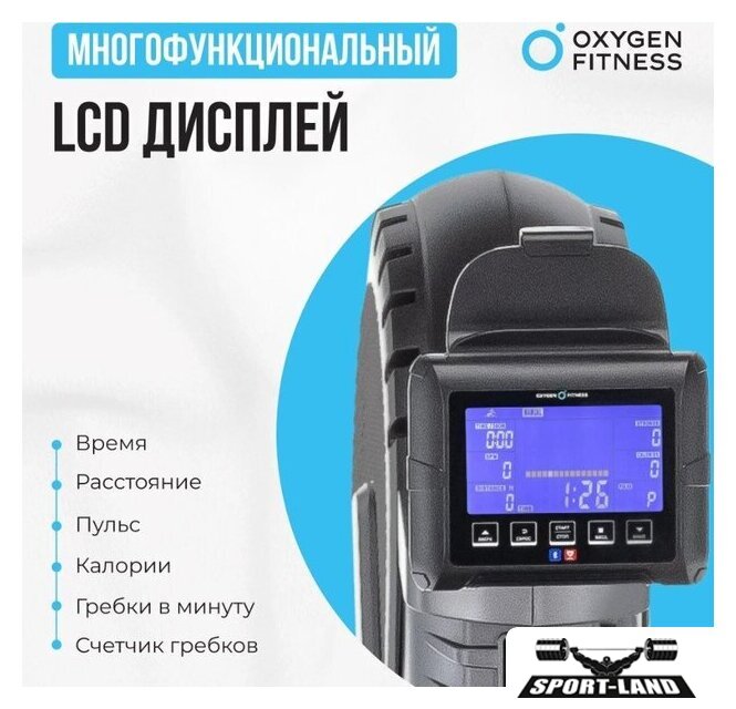 | Показания на дисплее | время, калории, расстояние, количество гребков в минуту, счетчик гребков, пульс |
