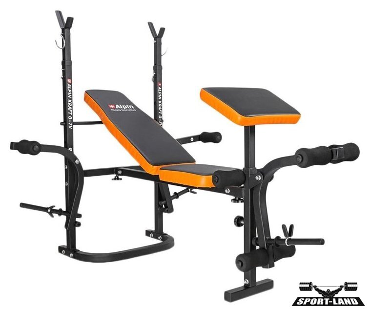 | Конструкция | стойка для штанги, скамья для жима штанги, парта Скотта, механизм для баттерфляя, блок для ног |