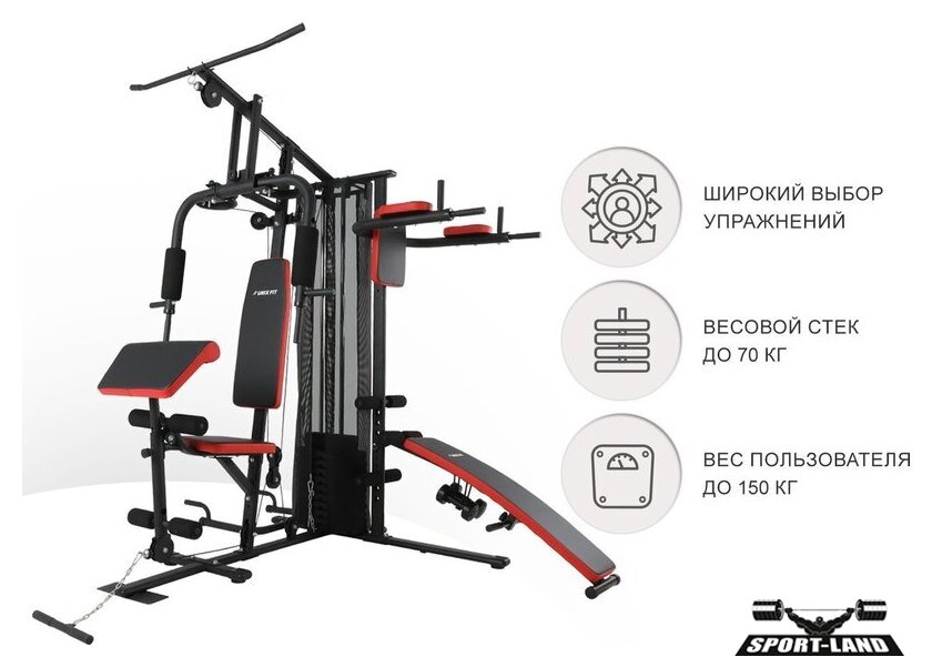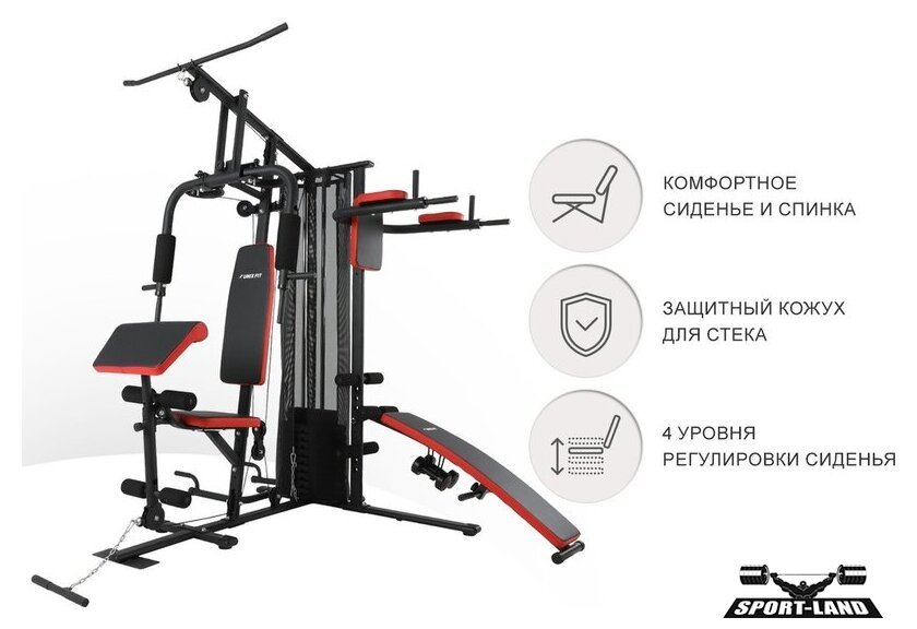 Конструкция | парта Скотта, скамья для пресса, упор для пресса, турник, брусья, механизм для баттерфляя, верхняя тяга, нижняя тяга |