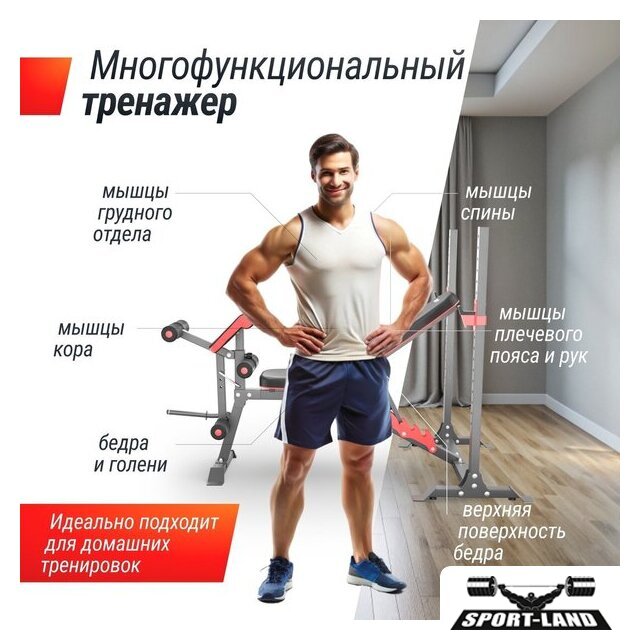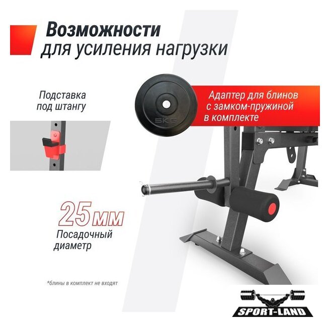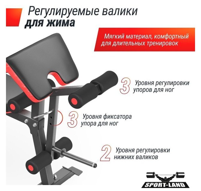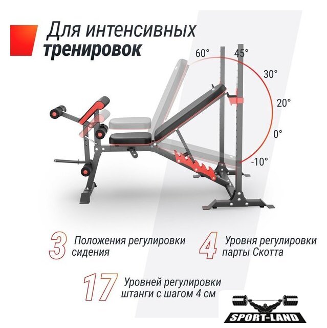 | Конструкция | стойка для штанги, скамья для жима штанги, парта Скотта, скамья для пресса |