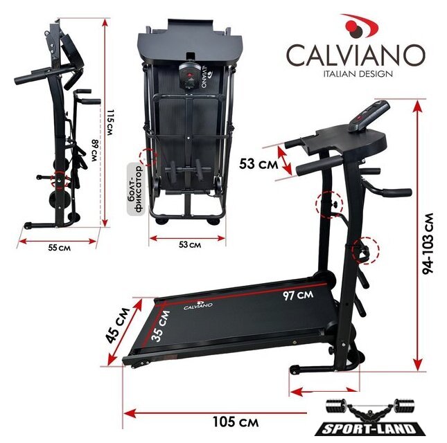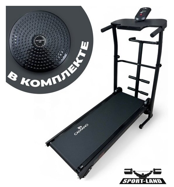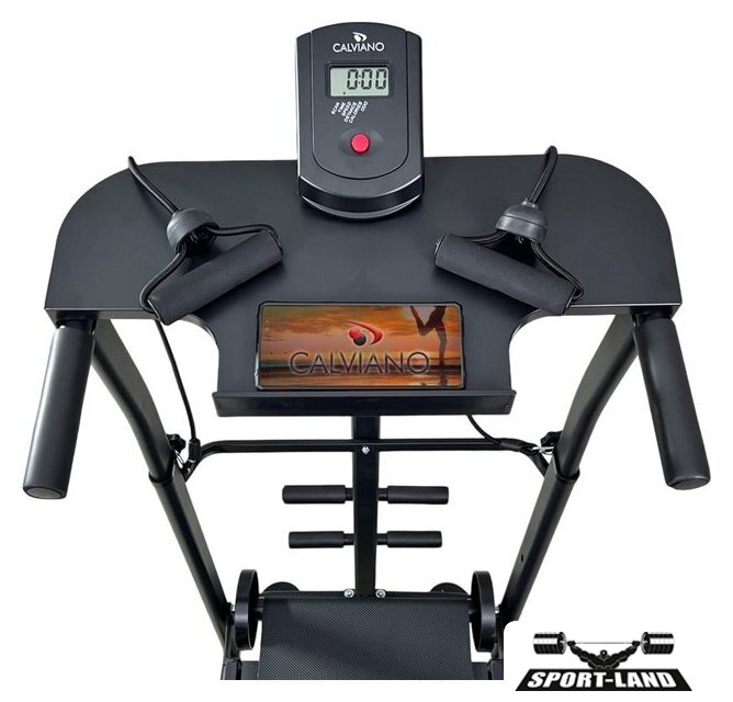 | Особенности | Прочная и надежная конструкция;Эспандеры для рук;Диск здоровья;Широкая подставка для планшета или смартфона;На встроенном ЖК дисплее вы сможете осуществлять контроль за показаниями тренировок: время, скорость, израсходованные калории, пройденная дистанция;Регулировка угла наклона полотна: 2 положения;Регулировка поручней по высоте: 5 положений;Беговая дорожка оснащена двумя транспортировочными роликами для удобства перемещения;Складная конструкция беговой дорожки Calviano BeFIT обеспечит удобное хранение даже в небольшом помещении. |