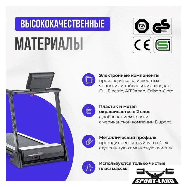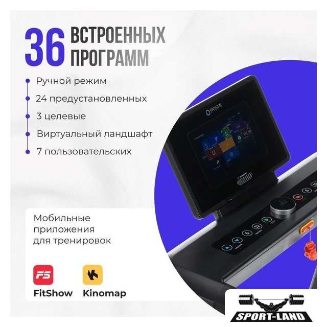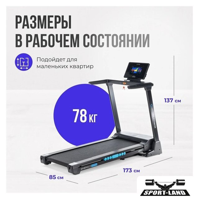 | Отображаемая информация | время тренировки, пройденная дистанция, текущая скорость, пульс, угол наклона |
