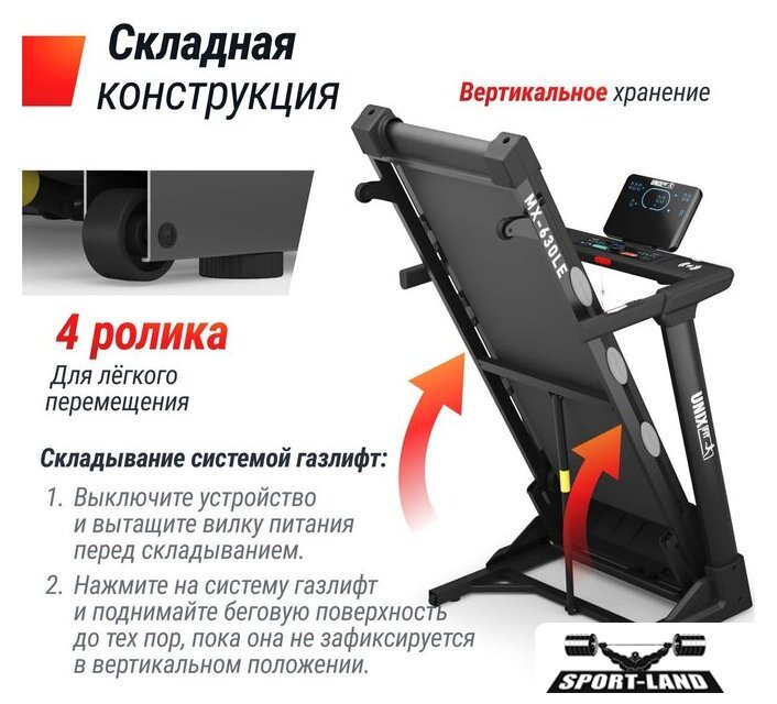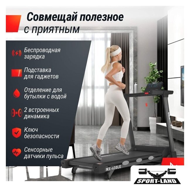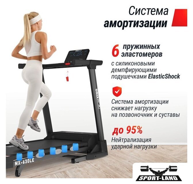 | Особенности | Система шумоподавления Smartex, Система амортизации ElasticShock, Беспроводная зарядка для гаджетов, Ключ безопасности, Быстрый старт, Поддержка FitShow, Складная конструкция, Двухслойная покраска рамы, Компенсаторы неровности пола, Транспортировочные ролики |