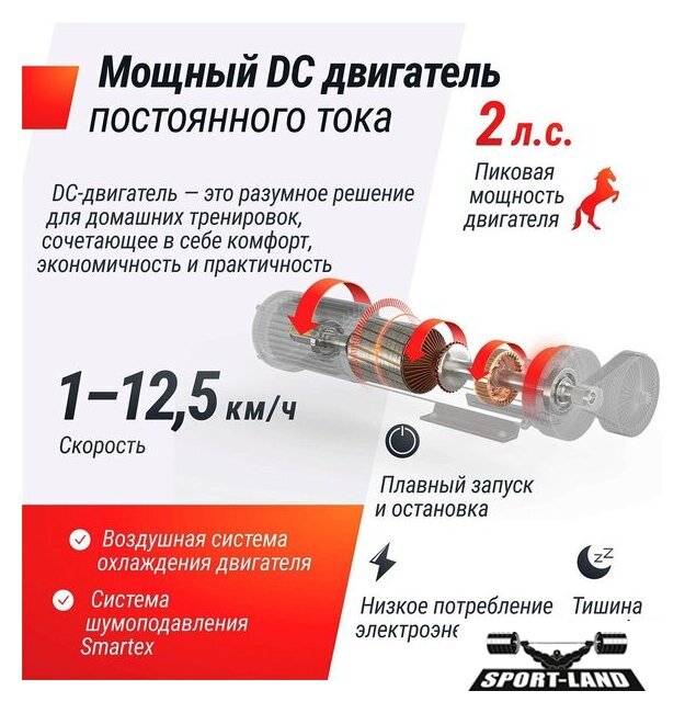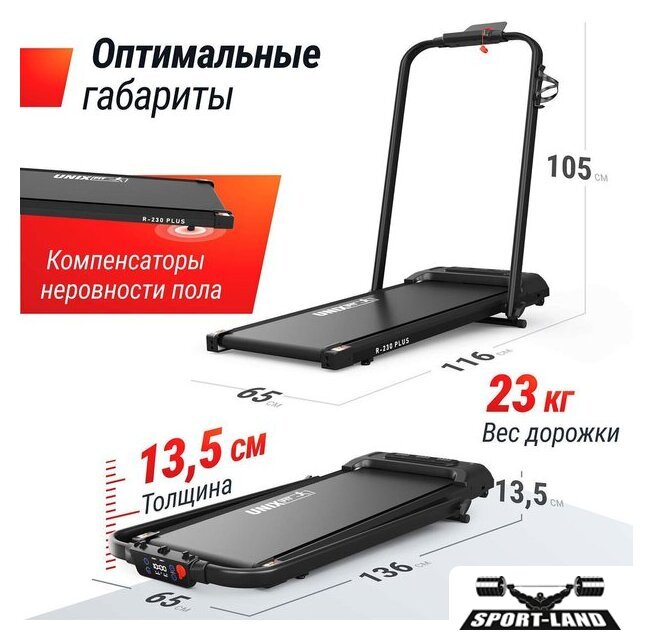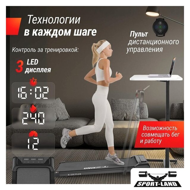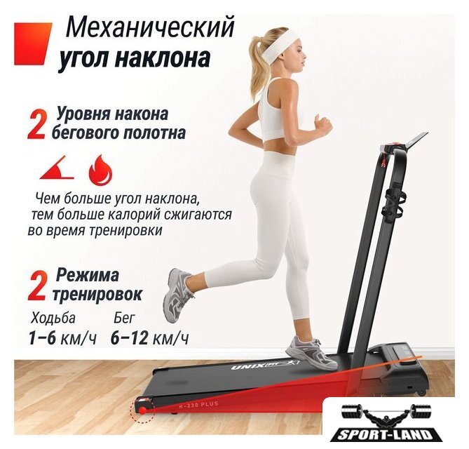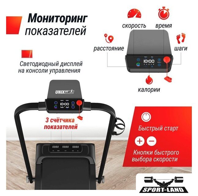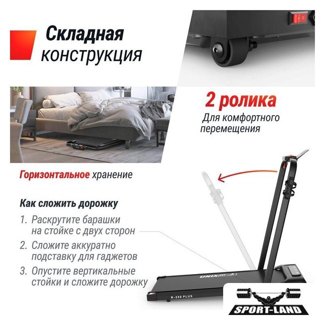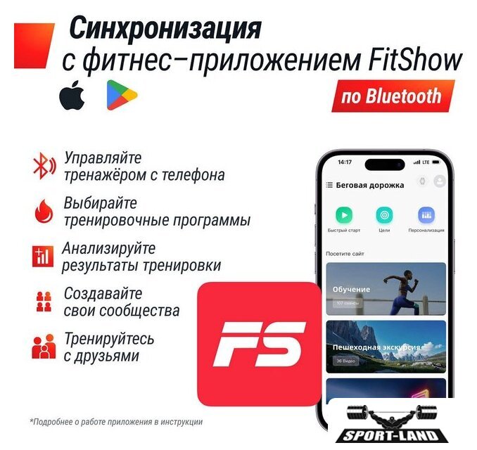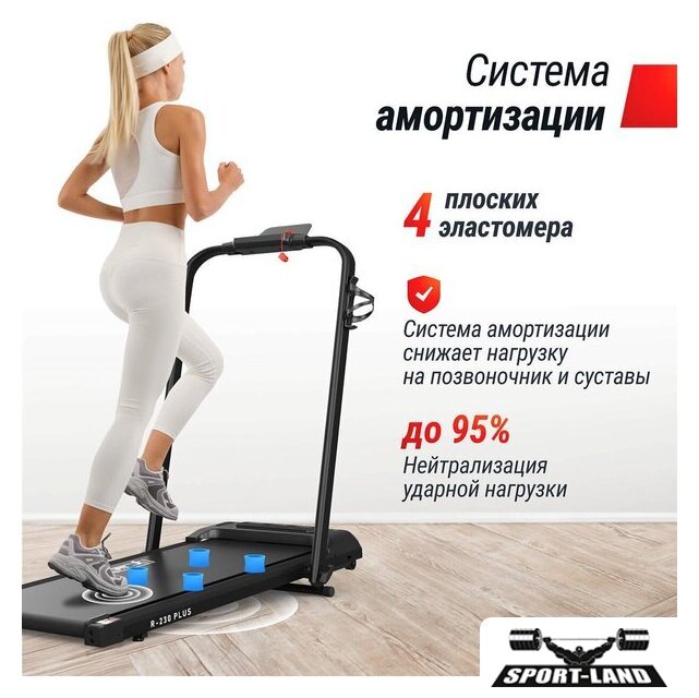 | Особенности | Быстрый старт, Ключ безопасности, Управление с браслета, Система шумоподавления, Складная конструкция, Энергосберегающий режим, Поддержка FitShow, Двухслойное антискользящее полотно, Ручная регулировка наклона, Транспортировочные ролики |