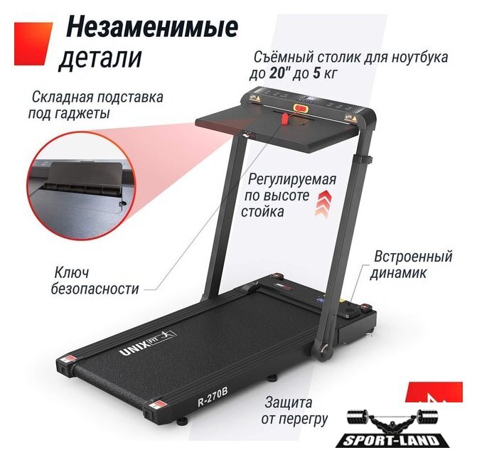 | Особенности | Система амортизации на 6 эластомерах, Ручная регулировка угла наклона, Пульт дистанционного управления, Складная подставка под гаджеты, Съёмный столик для ноутбука, Ключ безопасности, Встроенный динамик, Энергосбережение класс А+, Компенсаторы неровности пола, Транспортировочные ролики |