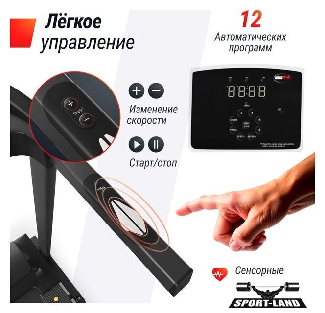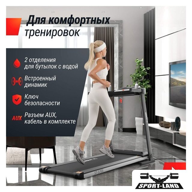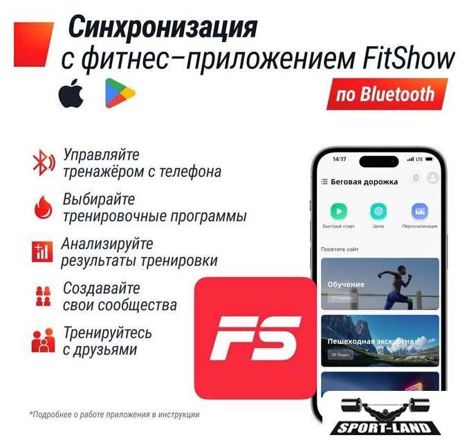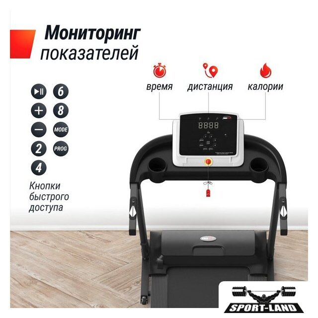 | Особенности | Двухуровневая амортизация, Система шумоподавления Smartex, Класс энергоэффективности А+, Поддержка FitShow, Быстрый запуск, Кнопка старт/пауза, Кнопки быстрого доступа, Ручная смазка полотна |