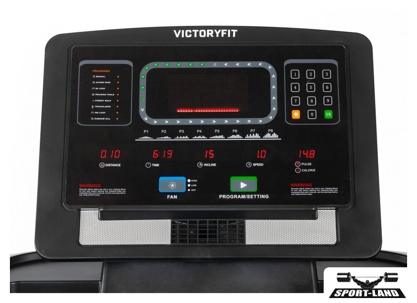 | Показания на дисплее | Угол наклона, дистанция, время тренировки, скорость бега, значение пульса или калорий (программа Bodyfat) |